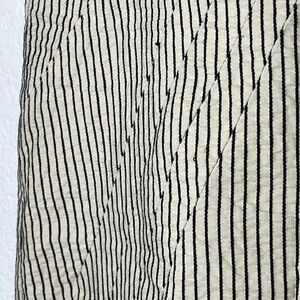 The fabric has texture similar to seersucker and the black stripes are slightly raised.