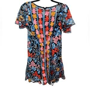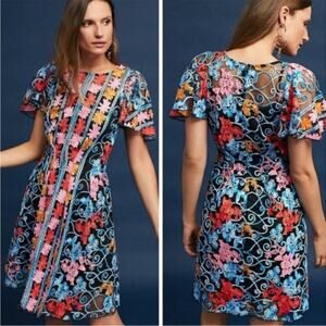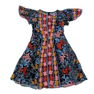 Anthropologie Eva Franco x Ferrah Embroidered Lace Lined Dress Colorful Size 0