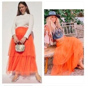 Anthropologie Evelyn Tulle Tiered Midi Maxi Skirt in Orange