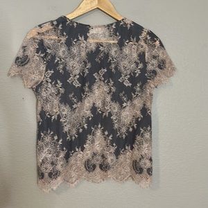 Anthropologie Everleigh Grey/Tan Lace Overlay Top Size Small Petite