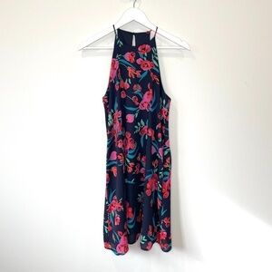 Anthropologie Everly Floral Navy Blue Mini Swing Dress