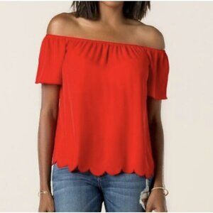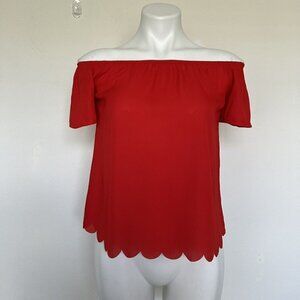 Anthropologie Everly Scallop blouse Top off shoulder Red XSMAL NWOT