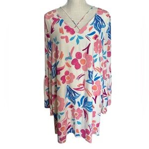 Anthropologie Everly Shift Dress Bell Sleeve Floral Lined VNeck Size Large EUC