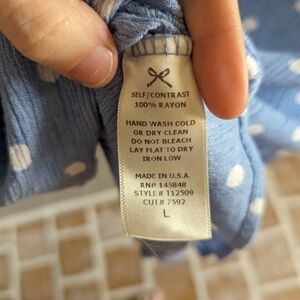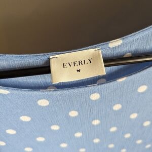 DARLING blouse by Everly with polka dot details. Listed as size L but does run smaller, best for M and under.