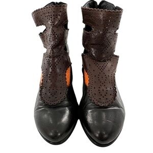 Anthropologie Everybody Chiseled Doily 41 Black Brown leather Filigree Boots