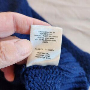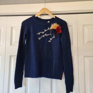 Anthropologie Evie Field Flower Navy Long Sleeve Pom Pom Embroidered Sweater