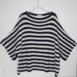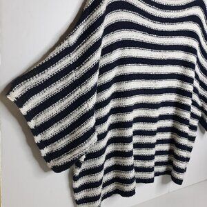 Anthropologie Evie Poncho Blue Striped Knit Sweater M/L Oversized Boho