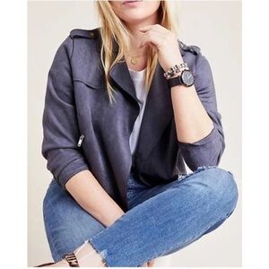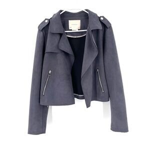 Anthropologie Expressway Moto Jacket Dark Grey Faux Suede Zip Up