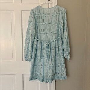 This dress is such a pretty light turquoise color! No flaws. Size 4.