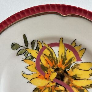 Anthropologie Eyewanderer S Sunflower Alphabet Plate Red Rim 6”