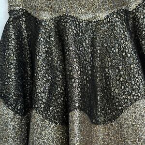 EUC Foil Brocade Lace Mini Dress Strapless Metallic Gold and Black