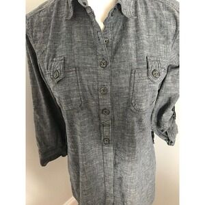 Anthropologie FEI Women's Heather Blue Tab Sleeve Chambray Shirt Dress Size S