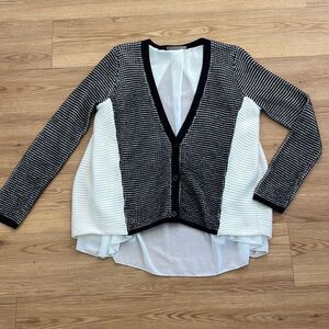 Button front sweater/cardigan, black & white, sheer back open panel.