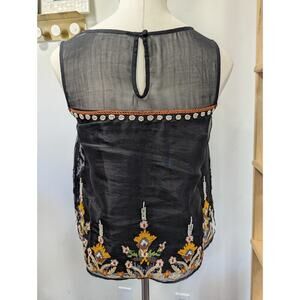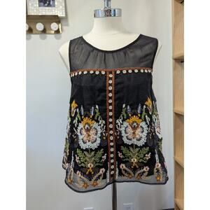 Anthropologie FLOREAT Nalini Beaded Blue Embroidered Beaded Sleeveless Top SZ 2