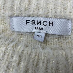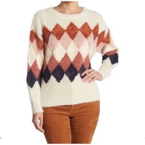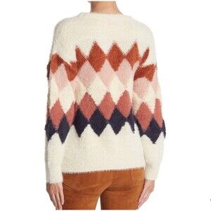 The Anthropologie FRNCH Paris Textured Argyle Pattern Metallic Gold Sweater is a cozy and stylish addition to any woman's wardrobe. Made from a blend of polyamide and acrylic, this sweater features a classic argyle/diamond pattern with metallic gold accents, giving it a chic and sophisticated look. The tight-knit construction and crew neck make it perfect for a casual occasion in any season, while the hand wash only care instructions ensure it remains looking its best. Designed by the brand Frnch, this sweater exudes a timeless Parisian vibe that is sure to elevate any outfit.