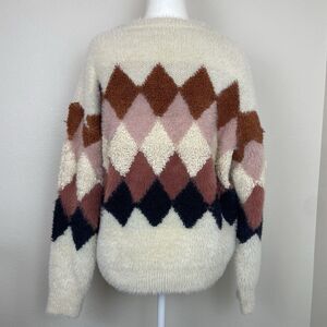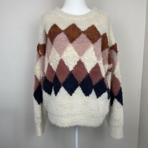 Anthropologie FRNCH Paris Textured Argyle Pattern Metallic Gold Sweater Cozy-M/L