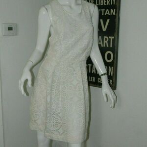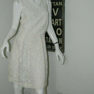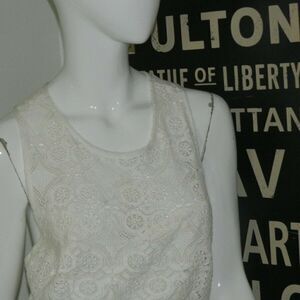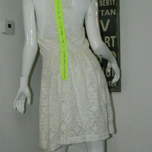 Anthropologie FUNKTIONAL Dress White Crochet Eyelet Neon Green Zipper Medium