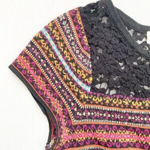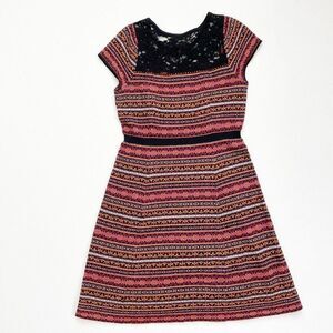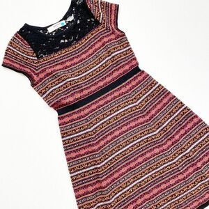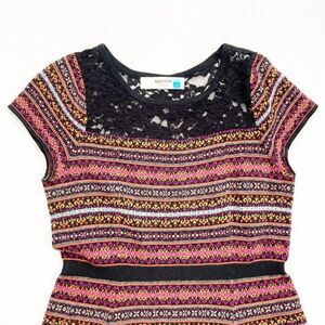 Anthropologie Sparrow Women's sweater dress, lace detail with Fair Isle stripe pattern, short sleeve, light stretch