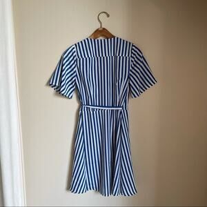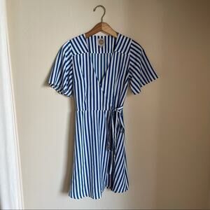 Anthropologie Family Affairs Blue and White Stripe Wrap Mini Dress S