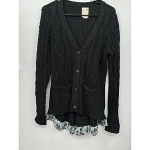 Anthropologie Far Away From Close Charcoal Peplum Cardigan Sweater Size small