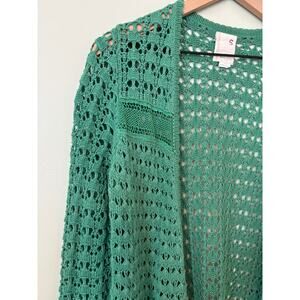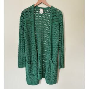 Anthropologie Far Away From Close Green Open Knit Cardigan Size Small