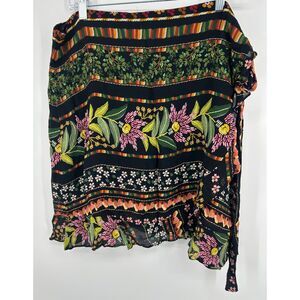 Anthropologie Farm Rio Arya Wrap Mini Skirt Black M/L