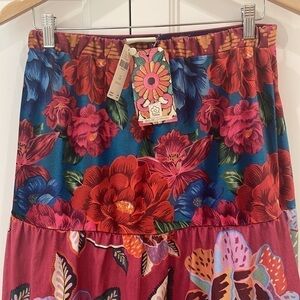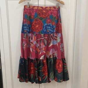 Anthropologie Farm Rio Drea Tiered Velvet Midi Maxi Skirt Floral-Boho-Romance-Cottage Core—Beautiful fabric and colors!! New with Tags. Size Small Petite.