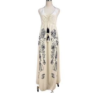 Anthropologie Farm Rio Embroidered Halter Maxi Dress Backless White
