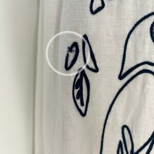 New with tags, unused, no flaws or odors. Some areas were the embroidery is loose upon close inspection; came new that way. Toucan and floral motifs. Elastic waist on the back. Fully lined. No pockets.