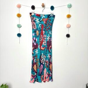 Bold skirt with a fun tropical textured design. Features vibrant hues and a unique pattern. Gabriela style. Stretches at the waist a bit and has a zipper. Size small. Great condition!