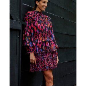 Anthropologie Farm Rio Iridescent Leopard Hot Pink Ruffle Mini Dress NWT XXS