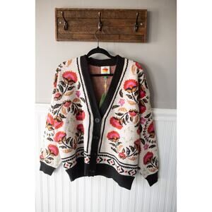Anthropologie Farm Rio Palms Paradise Sand Knit Bomber Jacket Small NEW