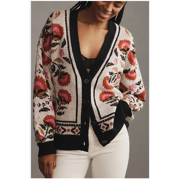 Anthropologie Farm Rio Palms Paradise Sand Knit Bomber Jacket XS NEW