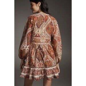 Anthropologie Farm Rio Romantic Nature Multicolor V-Neck Puff-Sleeve Mini Dress