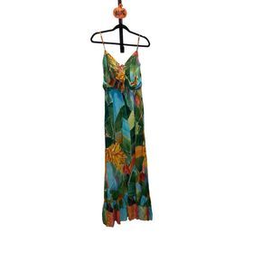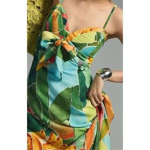Anthropologie Farm Rio Tie-Waist Printed Dress Multi Palm size M