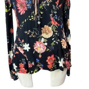 NWT Farm Rio Floral Long Sleeve Top in Black.