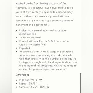 Anthropologie Farrow & Ball Lotus Wallpaper NWT