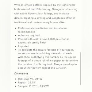 Anthropologie Farrow & Ball Orangerie Wallpaper NWT
