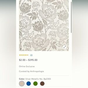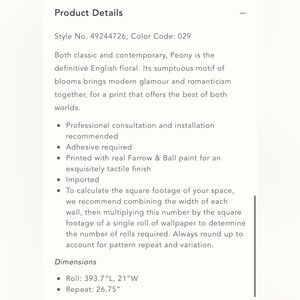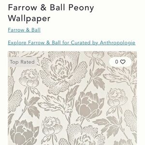 Anthropologie Farrow & Ball Peony Wallpaper NWT