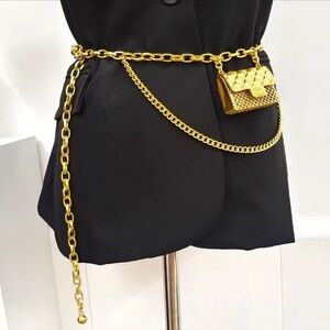 Anthropologie Fashion Tassel Silver Chain Belt with mini Bag Trendy! Mini Bag