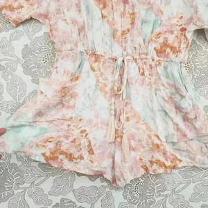Anthropologie Fate Tie-Dye Kimono Sleeve Wrap Romper M Pastel Multicolor