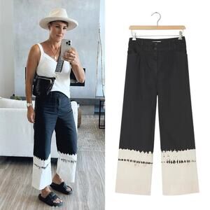Anthropologie "Fatima" dip dyed wide leg crop high-rise wide-leg cropped pants in navy and ivory tie dye. Stylish and versatile, perfect for casual or dressy looks. Cotton blend. Size 30.