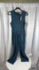 Anthropologie brand jumpsuit, deep hand pockets, wide cropped leg has a belted waist and sleeveless top; Thick, Ultra soft faux suede, in Lux teal blue, polyester with a bit of spandex for flow and stretch; Dry clean only