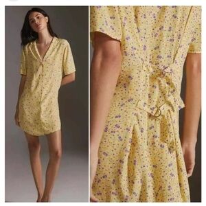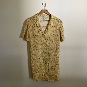 Anthropologie Favorite Daughter Butter Yellow Floral Button Front Shirt Dress