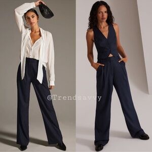 Anthropologie Favorite Daughter The Favorite Pinstripe Tailor Pants Navy 14 NWT