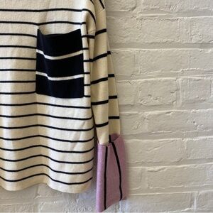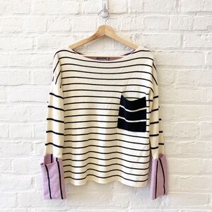 Anthropologie || Faye Striped Boxy Contrast Cuff Sweater Ivory Lavender Small