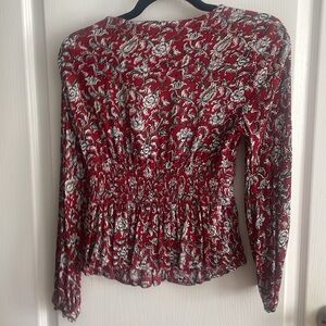 Anthropologie Feather Bone Latrobe Floral Lace Up Smocked Peplum Blouse size 4