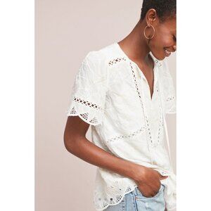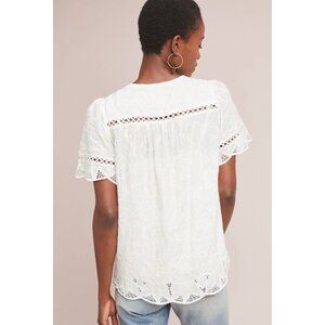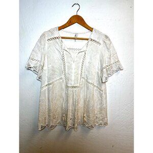Anthropologie Feather & Bone White Embroidered Boho Top – Size 6