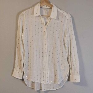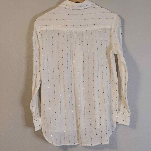 Anthropologie Feather & Bone Womens Button Up Top Size XS Striped Long Sleeve