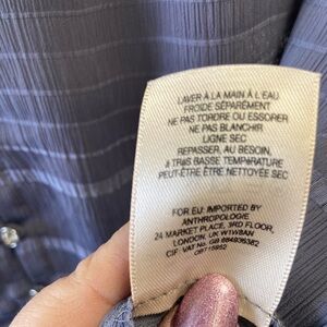 Anthropology, Featherbone, gray blouse striped size small women’s beautiful diamond buttons